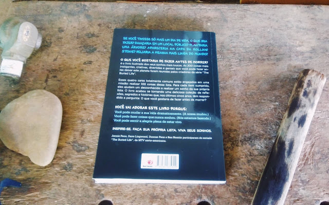 Sinopse: SE VOCÊ TIVESSE SÓ MAIS UM DIA DE VIDA, O QUE IRIA FAZER? PLANTARIA UMA ÁRVORE? ASSALTARIA UM BANCO? IRIA SE ABRIR COM ALGUÉM? O QUE VOCÊ GOSTARIA DE FAZER ANTES DE MORRER? é o livro ilustrado dos seus sonhos mais loucos. As 200 coisas mais instigantes, criativas, divertidas e geniais que você pode fazer antes deixar este planeta foram reunidas pelos criadores da série The Buried Life. Esses quatro caras totalmente comuns estão engajados em uma missão: realizar 100 coisas dessa lista. Para cada item cumprido, eles ajudam um desconhecido a realizar um sonho da sua própria lista. O livro acabou se tornando uma deliciosa coleção de reflexões, segredos e histórias que, nos últimos cinco anos, têm respondido a pergunta: O que você gostaria de fazer antes de morrer?