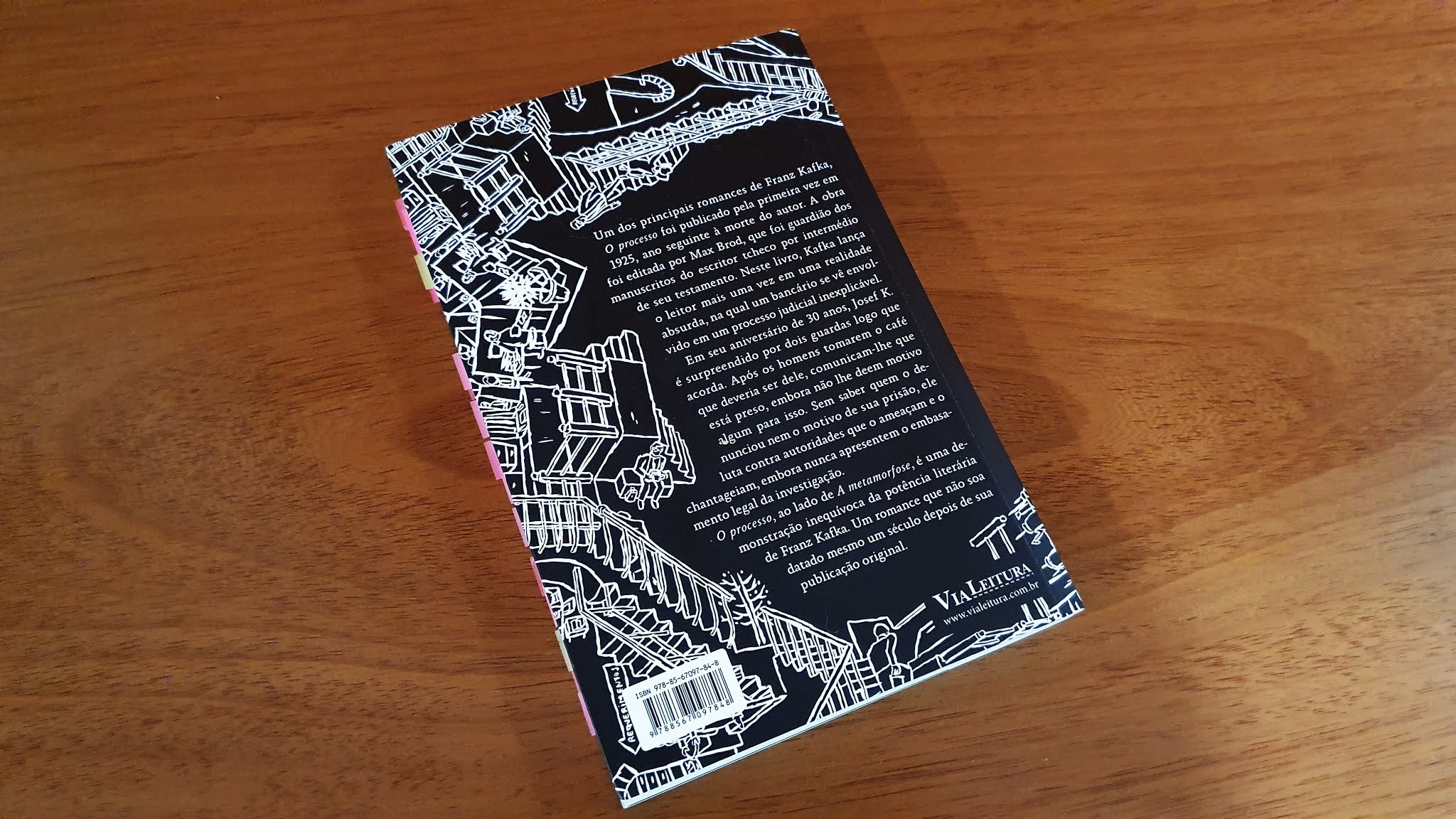 Seguindo o modelo tradicional de suas publicações, a editora Edipro, através do selo Via Leitura, nos apresenta mais uma belíssima edição em brochura e com uma capa que demonstra totalmente o caos apresentado na história de Josef K. A edição ainda conta com fontes muito agradáveis e papel pólen [amarelinho]. E como disse antes, não tem como negar que, felizmente, O Processo de Franz Kafka e publicado pela editora Via Leitura é sim, I.M.P.E.R.D.Í.V.EL.
