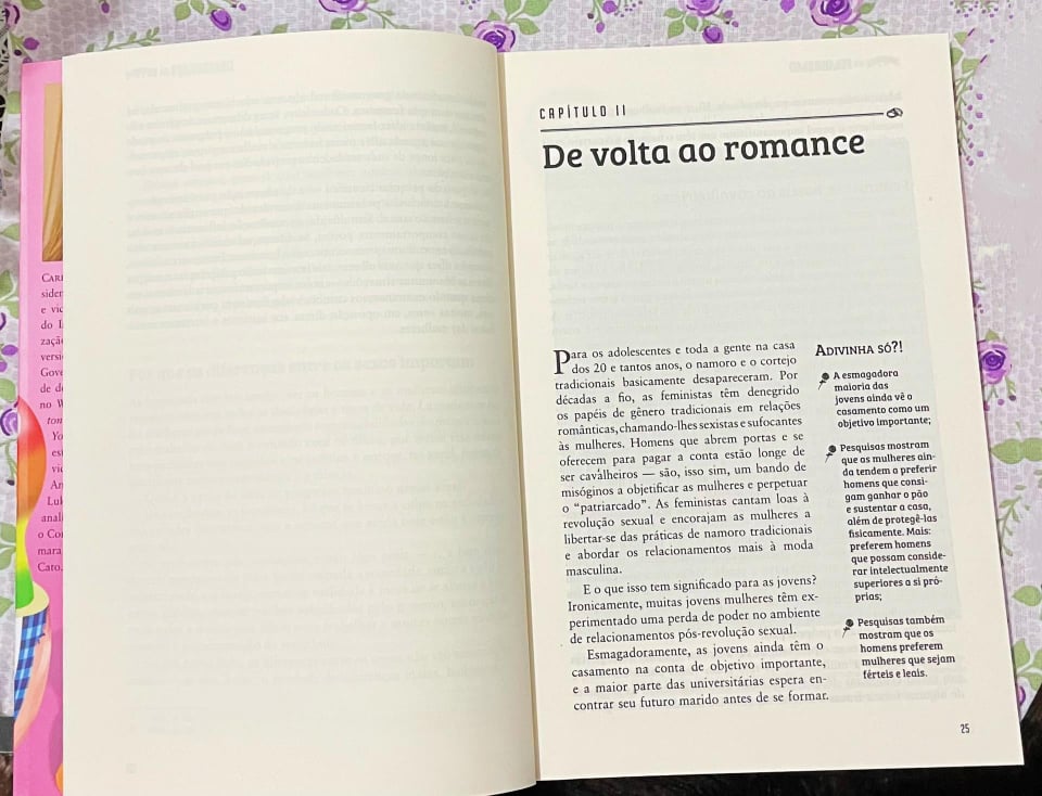 Resenha/Opinião: Este livro tem a intenção de realmente ser um manual, abordando diversos temas do senso comum, levando um pouco mais a fundo a análise de todos eles. Assuntos que vão desde a libertação sexual ao aborto, são tratados nas páginas dessa obra. A proposição da autora é discorrer sobre esses temas apontando falácias e crenças disseminadas pelo feminismo, as quais não são sustentadas na realidade e, para isso, Carrie usa alguns estudos, dados estatísticos e pesquisas para que o leitor possa embasar seu conhecimento e acompanhar o raciocínio.